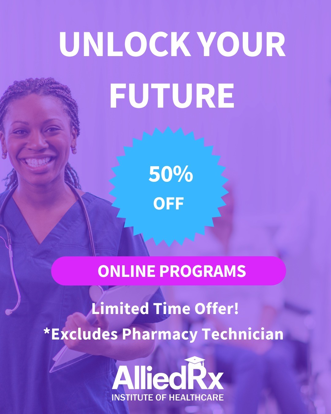 Unlock your healthcare career potential at AlliedRx Institute of Healthcare! Explore our range of tuition options, financial aid opportunities, and flexible payment plans designed to make quality healthcare education accessible to all. For an in-depth overview of all expenses related to each program, please navigate to the corresponding program page